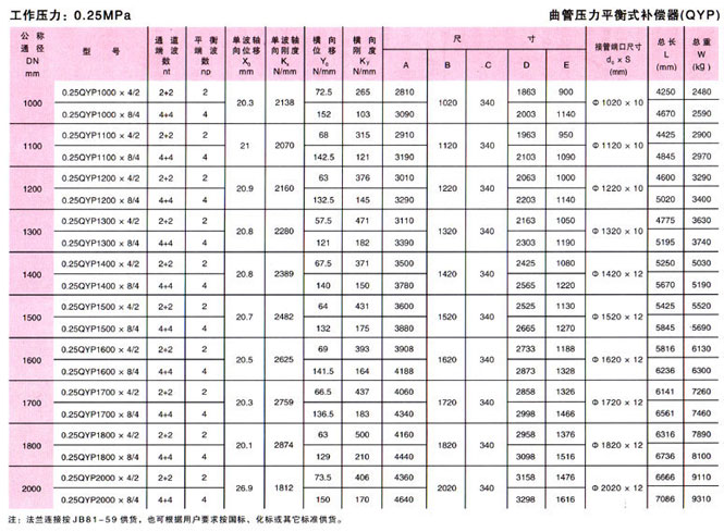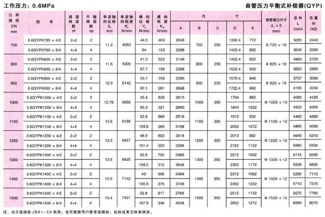 曲管壓力平衡式補償器(QYP)技術參數(shù)