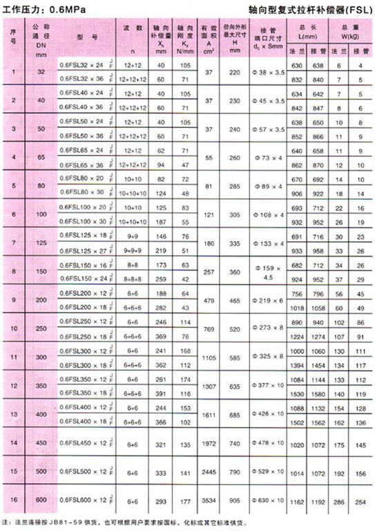 軸向型復式拉桿波紋補償器(FSL型)參數1