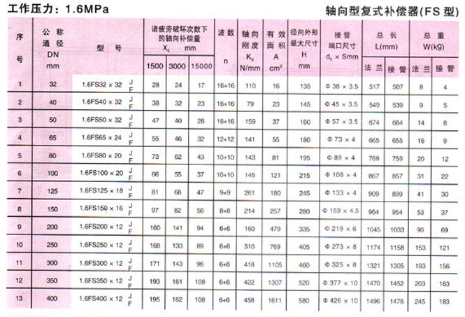 軸向型復(fù)式波紋補償器(FS型)參數(shù)2